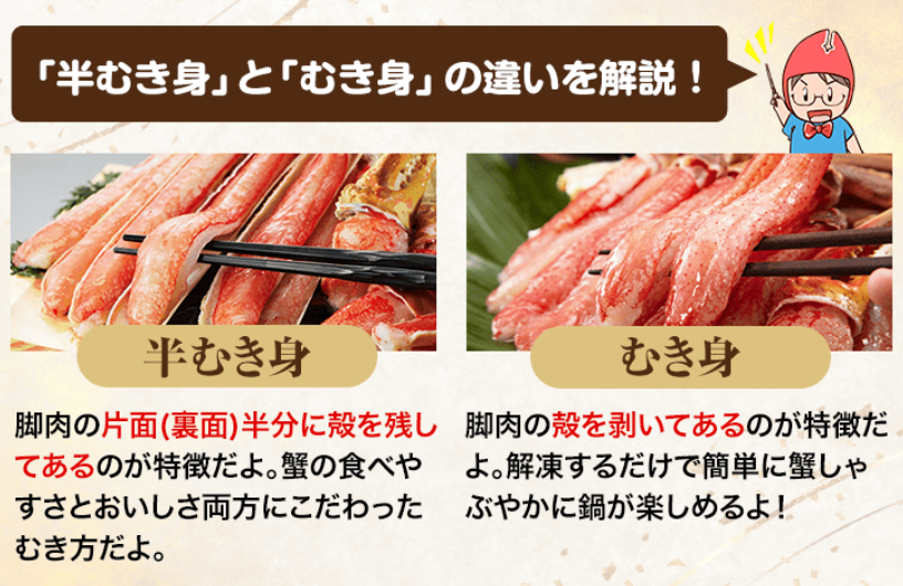かに通販が初めての方でも安心できるよう、商品ページには写真やサイズ、食べ方の説明が丁寧に掲載されています。