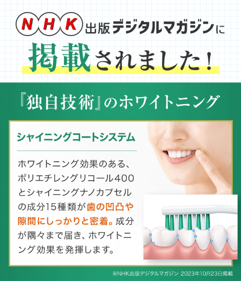 毎日の歯みがき習慣で、ホワイトニングケアと口臭予防を同時に行えるのが特徴です。