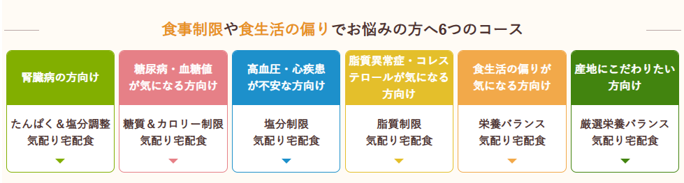 - たんぱく質&塩分制限気配り宅配食: 腎臓病予防・治療中の方にもおすすめの設計。