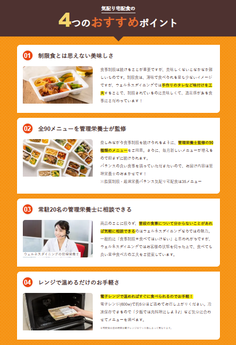 ウェルネスダイニングは、「制限があっても食事を楽しみたい」という声から生まれた、食事制限専門の宅配健康食サービスです。