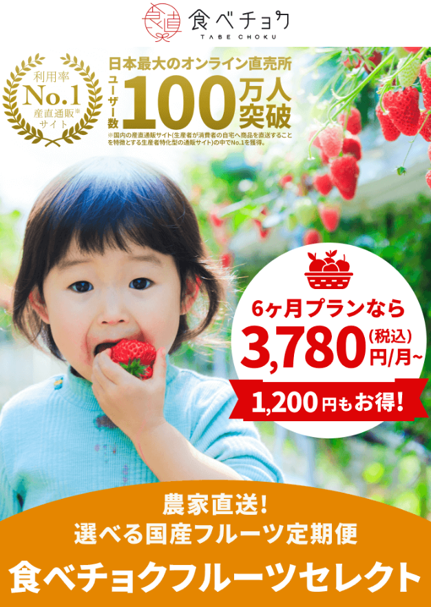 食べチョク フルーツセレクトは、全国の農家から旬の果物を直送で受け取れる定期便サービスです。