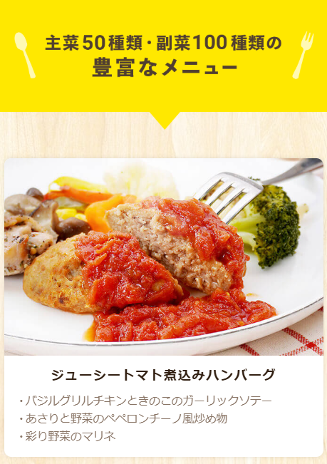 和食・洋食・中華・エスニックなどジャンルが幅広く、週に何食頼んでも飽きない構成になっています。