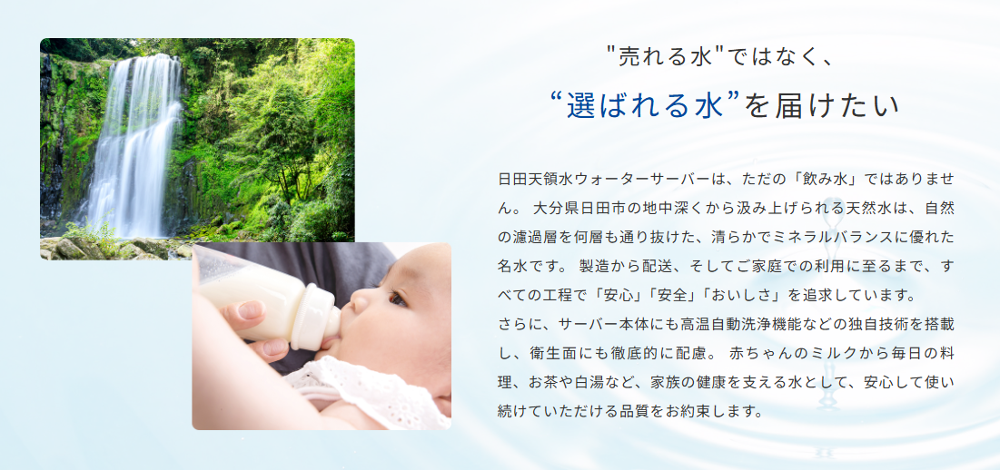 天然の「日田天領水」を、自宅やオフィスで気軽に使えるメリットは大きく、