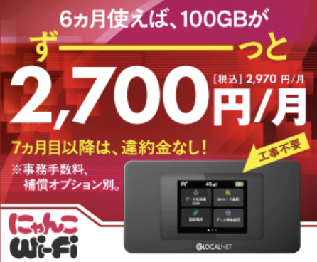 にゃんこWi-Fiは、ポケットWi-Fiの中でもトップクラスの低価格帯で利用できます。余計なオプション類がなく、シンプルな料金体系なので、通信費を抑えたい人にも最適です。