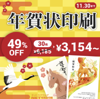 ネットスクウェアは、昨年だけで16万件以上の注文が入る国内最大級の年賀状印刷サービスです。「印刷品質」「料金」「納期の早さ」「デザイン数」のすべてにおいてバランスが良く、個人・法人のどちらからも高い評価を得ています。