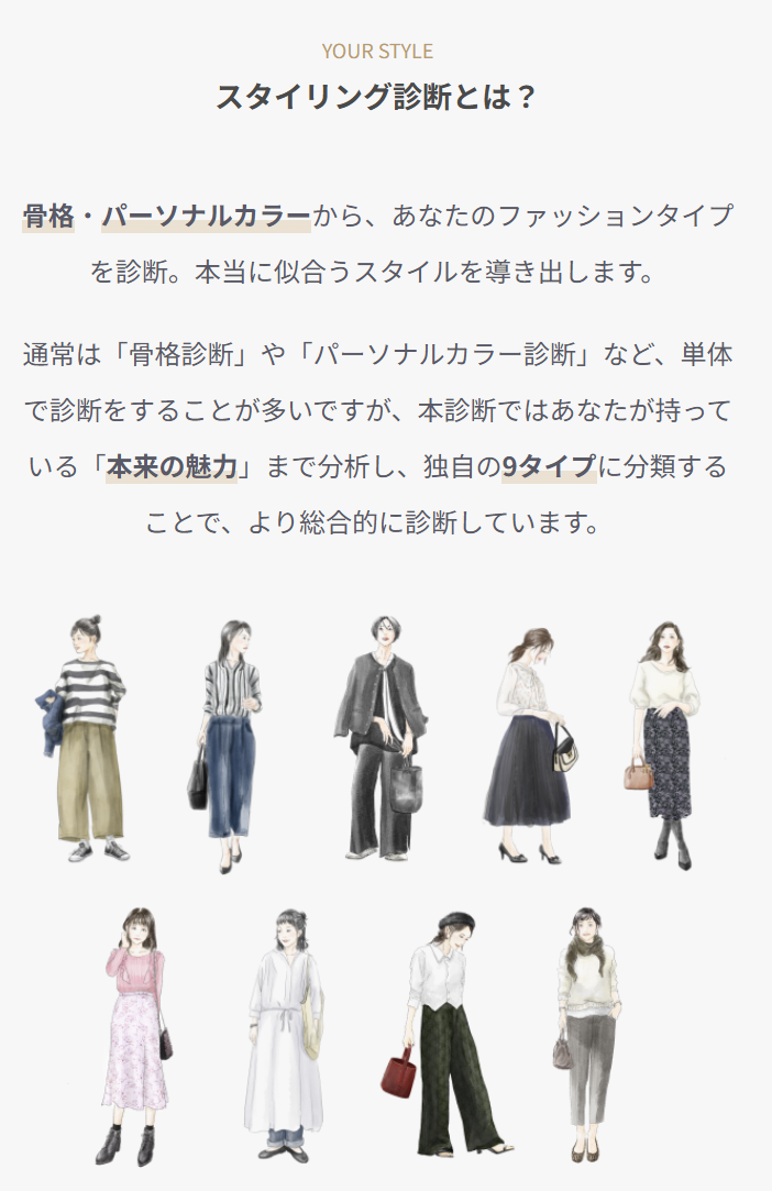これをもとに、経験豊富なスタイリストが「似合う」「続けやすい」「取り入れやすい」アイテムを厳選。自分では選ばないけど着てみたらすごく似合う、という新しい発見もあります。