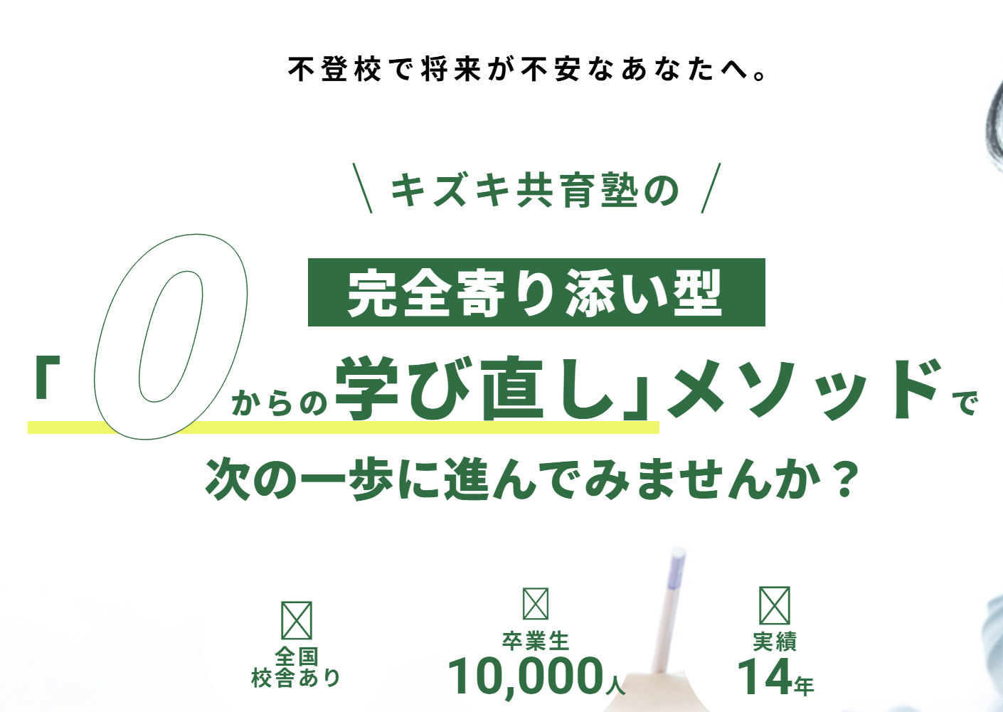 学校に行けない期間があっても、勉強のやり直しは必ずできます。キズキ共育塾は、その一歩を無理なく踏み出せる環境を提供してくれる場所です。