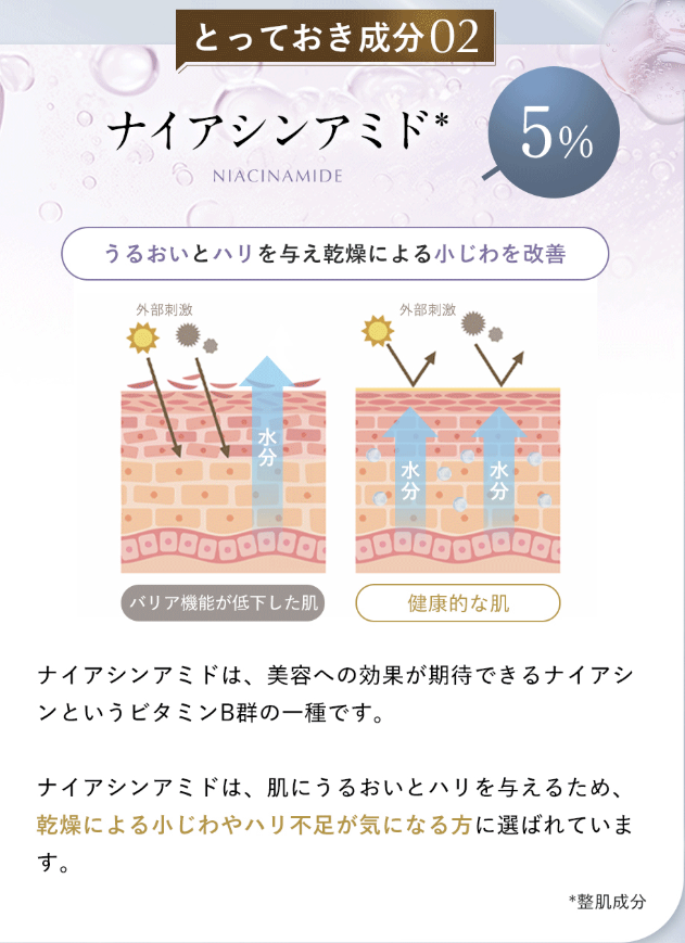 ナイアシンアミドや保湿成分が透明感を引き出し、明るい印象へ導いてくれます。