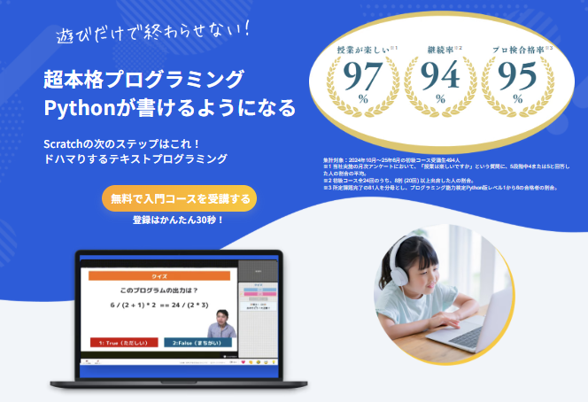 「ちゃんプロ」は、小中学生を対象としたオンライン完結型のプログラミング学習サービスです。特に注目されているのが、なんと2ヶ月間の完全無料体験ができるという点。初期費用なしで本格的なプログラミングに触れられるため、「まずは試してみてほしい」という保護者から強い支持を集めています。